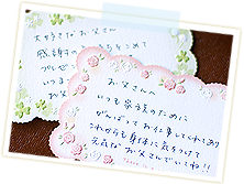 直接手渡せないので配送して頂きましたが、手書きのメッセージカードも